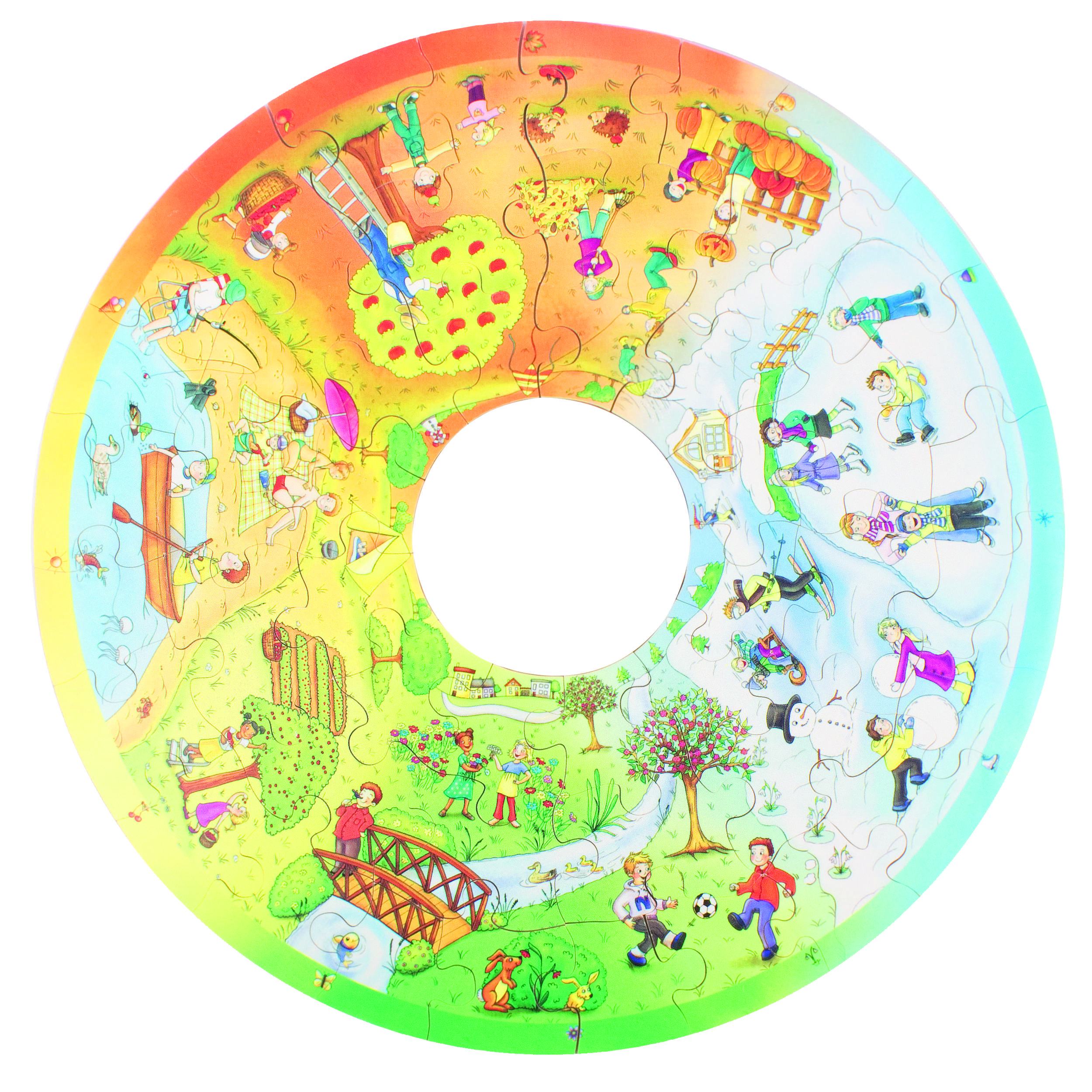 這是一款圓形益智拼圖,旨在幫助兒童認(rèn)識一年中季節(jié)的鮮明特征,理解四季更迭的規(guī)律。通過拼圖游戲,兒童不僅能掌握各月份的基本特點,還能將拼圖中的場景與現(xiàn)實生活中的季節(jié)變化相聯(lián)系。